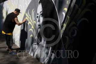 CIUDAD DE MÉXICO, 04MARZO2020.- Un joven pinta murales de mujeres que han sido víctimas de feminicidio en la entrada de la Glorieta de Insurgentes. FOTO: GRACIELA LÓPEZ /CUARTOSCURO.COM