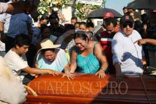VILLAHERMOSA, TABASCO, 04MARZO2020.- El cortejo fúnebre del cuerpo sin vida de la señora Patricia Jiménez, quien dejara de existir tras haber recibido medicamento caduco o contaminado en el área de hemodiálisis del hospital Regional Villahermosa de PEMEX, fue acompañado con mariachis hasta su ultima morada en el panteón Central. Los hijos de la fallecida mujer; Guadalupe Paola, Paulina y Adolfo Palacios Jiménez entre dolor y sufrimiento exigieron castigo con cárcel a responsables de la tragedia, al igual intervención de Octavio Romero Oropeza y el presidente Andrés Manuel López Obrador. FOTO: EDGAR JASSO/CUARTOSCURO.COM