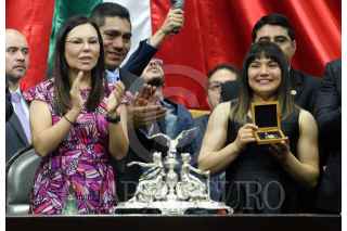 CIUDAD DE MÉXICO, 05MARZO2020.- Alexa Citlali Moreno Medina, gimnasta olímpica, recibió durante sesión solemne de la Cámara de Diputados, la medalla al Mérito Deportivo. FOTO: MARIO JASSO /CUARTOSCURO.COM