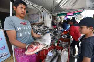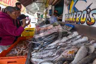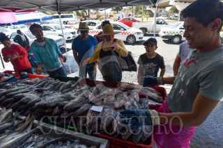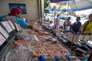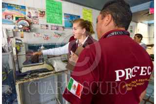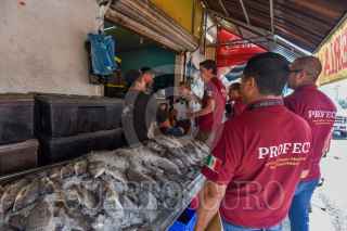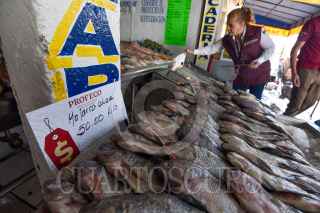Personal de la Oficina de Defensoría del Consumidor (ODECO) antes conocida como PROFECO acudieron a San Luis Mextepec a revisar básculas y colocar preciadores en los locales de venta de pescado con motivo de la Cuaresma. FOTO: CRISANTA ESPINOSA AGUILAR /CUARTOSCURO.COM