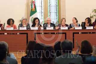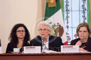 CIUDAD DE MÉXICO, 05MARZO2020.- Reunión del gabinete de mujeres del Presidente Andrés Manuel López Obrador, quienes se encontraron de manera rpivada y al termino ofrecieron una conferencia de prensa. La encabezó Olga Sánchez Cordero, encargada de la política interna del país. FOTO: VICTORIA VALTIERRA/CUARTOSCURO.COM