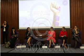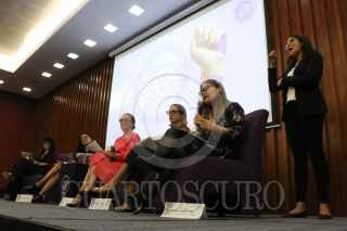 CIUDAD DE MÉXICO, 05MARZO2020.- Karla Salas, abogda feminista, Ivánna Ramos, circula feminista Ruth Zenteno, encargada de la Cuarta Visitaduria, Ana Romero, investigadora Inacipe y Daniela Aguirre, comisionada de atención a víctimas de violencia en la ciudad, durante el Conversatorio “Investigación del delito de feminicidio con perspectiva de género” en la Sala Digna Ochoa de la Comisión de Derechos Humanos de la Ciudad. FOTO: ROGELIO MORALES /CUARTOSCURO.COM