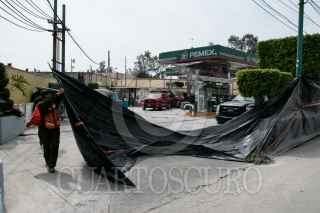 CIUDAD DE MÉXICO, 05MARZO2020.- Continúan cerradas las estaciones Pantitlán, Hangares y Terminal Aérea de la Línea 5 del Sistema de Transporte Colectivo (STC) Metro por la fuga de gasolina de una estación de servicio frente a la terminal 2 del Aeropuerto Internacional de la Ciudad de México. Debido a ello se ha implementado servicio gratuito de RTP para cubrir dicho tramo. Los trabajos en la gasolinera continúan. FOTO: GALO CAÑAS /CUARTOSCURO.COM