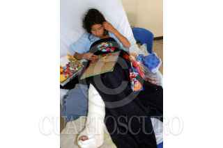 MEXICO, D.F., 06ENERO2006.- Un niño tuvó que festejar el Día de Reyes hospitalizado en el Hospital Pediátrico de la Villa. FOTO: Moisés Pablo/CUARTOSCURO.COM