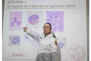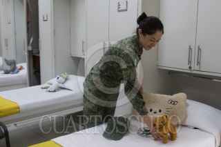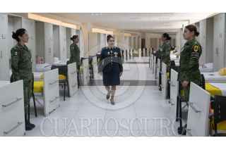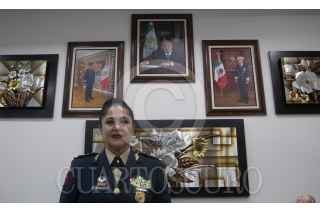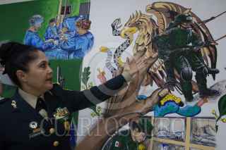 CIUDAD DE MÉXICO, 06MARZO2020.- La General Brigadier Martha Patricia Hernández Guzmán, directora de la Escuela Militar de Medicina y Comandante del Centro Militar de Ciencias de la Salud, es la primera mujer en mayor rango en las Mujeres en el cargo de General Brigada en activo. Realizó su alta en el año de 1977 y ha realizado su servicio por 43 años. Dentro de sus actividades, ha realizado esculturas y pinturas, entre los cuales destacan la escultura de la “Mascota UEA”, la cual significa Unión de Estudiantes Acalambradas, y con el lema “Ay pelón si no me rezas el uniforme, me lo regresas”. La pieza fue realizada a petición de las alumnas porque sólo existía la mascota UEO, que significa Unión de Estudiantes Oprimidos. Después de la demolición de la escuela en 2017, quedaron 2 vitrales y posteriormente ha realizado una serie de pinturas con la representación de la filosofía de la escuela y los temas de la lucha de muerte, el trabajo en equipo formación de áreas básicas como Cirugía, Ginecología, Obstetricia y Pediatría. Los cuadros están hechos a base de madera y pintura acrílica. También imparte clases de Embriología. Se encuentran estudiando 42 oficiales y 135 cadetes mujeres, mientras que los hombres son 110 oficiales y 237 cadetes. Actualmente se encuentran un 13 % de mujeres en el Ejército , lo que equivales de 28 a 29 mil mujeres realizando su servicio. Se espera que el próximo 8 de marzo integrantes realicen la Evaluación Militar de los estados de Durango, Chihuahua, ,Mérida, Coahuila, Guanajuato y Colima. FOTO: GRACIELA LÓPEZ /CUARTOSCURO.COM