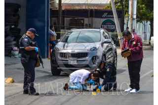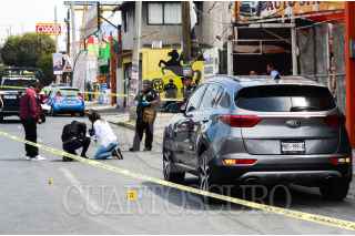 La camioneta de José Luis Álvarez Orozco regidor del ayuntamiento de Zinacantepec fue baleada en la avenida Adolfo López Mateos, en el lugar se contabilizaron al menos 20 casquillos percutidos, el regidor resultó herido y fue trasladado a un hospital de Toluca. FOTO: CRISANTA ESPINOSA AGUILAR /CUARTOSCURO.COM