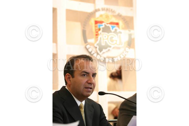 Toluca estado de México 06ENERO2006 .- El Procurador del Estado, Alfonso Navarrete Prida dio a conocer el desmantelamiento de la banda de secuestradores que operaba en el DF y dio Muerte a una Policia Judicial del Distrito Federal e hirieron a otro por tratar de boicotear un secuestro, integrada por 3 hombres y dos mujeres. FOTO: Noé Marure/CUARTOSCURO.COM