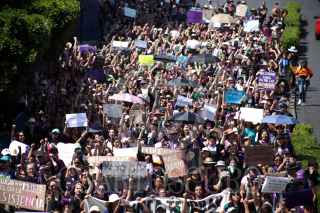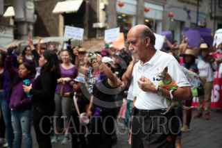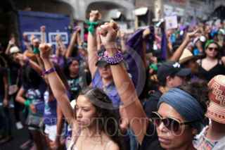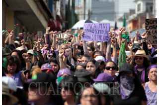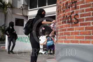 CUERNAVACA, MORELOS, 08MARZO2020.- Más de mil mujeres marcharon desde la glorieta de Tlaltenango hasta el zócalo de la ciudad para conmemorar el Día Internacional de la Mujer. Las mujeres, algunas con sus hijos, exigen al gobierno que las proteja del clima hostil contra ellas, que cese el machismo imperante en la sociedad, y justicia ante los feminicidios que se registran en la entidad. Un pequeño grupo de mujeres, con pasamontañas, realizaron pintas en edificios públicos y aventaron algunas botellas con gasolina. El paso de la marcha suscitó emociones encontradas, como fue el retiro de un joven fotógrafo por parte de un hombre adulto, que insistía en fotografiar al grupo que hizo las pintas FOTO: MARGARITO PÉREZ RETANA /CUARTOSCURO.COM