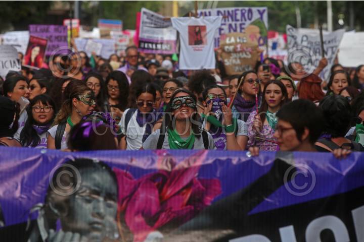 GUADALAJARA, JALISCO, 08MARZO2020.- Miles de mujeres tapatías se sumaron a la marcha nacional del #8M, en la que protestaron por la violencia de genero y exigieron justicia por los feminicidios en el país, dicho contingente partió de Plaza Universidad en el centro de la ciudad y concluyo en la Glorieta de los desparecidos donde relataron algunas historias, leyeron pliegos petitorios y gritaron consignas. FOTO: FERNANDO CARRANZA GARCIA / CUARTOSCURO.COM