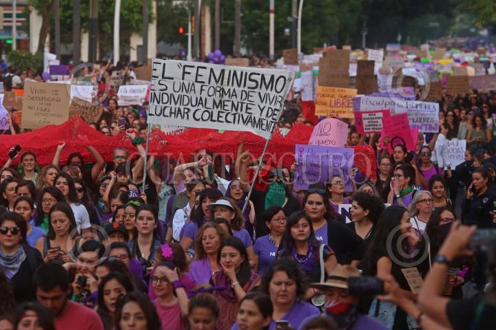 GUADALAJARA, JALISCO, 08MARZO2020.- Miles de mujeres tapatías se sumaron a la marcha nacional del #8M, en la que protestaron por la violencia de genero y exigieron justicia por los feminicidios en el país, dicho contingente partió de Plaza Universidad en el centro de la ciudad y concluyo en la Glorieta de los desparecidos donde relataron algunas historias, leyeron pliegos petitorios y gritaron consignas. FOTO: FERNANDO CARRANZA GARCIA / CUARTOSCURO.COM