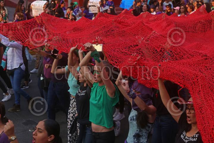 GUADALAJARA, JALISCO, 08MARZO2020.- Miles de mujeres tapatías se sumaron a la marcha nacional del #8M, en la que protestaron por la violencia de genero y exigieron justicia por los feminicidios en el país, dicho contingente partió de Plaza Universidad en el centro de la ciudad y concluyo en la Glorieta de los desparecidos donde relataron algunas historias, leyeron pliegos petitorios y gritaron consignas. FOTO: FERNANDO CARRANZA GARCIA / CUARTOSCURO.COM