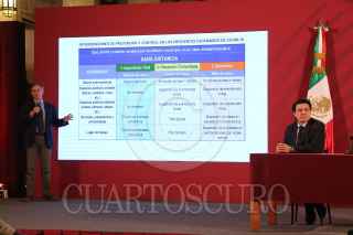 CIUDAD DE MÉXICO, 09MARZO2020.- Gustavo Reyes Terán, titular de la Comisión Coordinadora de Institutos Nacionales de Salud y Hospitales de Alta Especialidad; Hugo López-Gatell Ramírez, subsecretario de Prevención y Promoción de la Salud y José Luis Alomía Zegarra, director general de Epidemiología, encabezaron la conferencia de prensa sobre los casos y un próximo protocolo sobre el manejo de eventos masivos a nivel nacional para evitar el contagio del COVID-19. FOTO: ROGELIO MORALES /CUARTOSCURO.COM