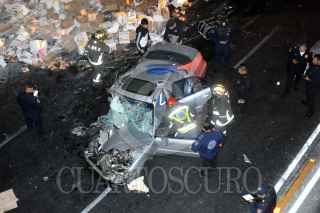 Ciudad de México, 10 marzo 2020. Fuerte choque entre un auto compacto y un tráiler, dejo una mujer sin vida y cuatro personas lesionadas, entre estos un menor de 4 años, en el cruce de Andrés Molina Enríquez y Plutarco Elías Calles de la colonia Nueva Santa Anita, en alcaldía de Iztacalco. El camión de carga quedo volcado luego del impacto con este vehículo. Foto: Luis Carbayo/cuartoscuro.com