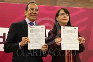 CIUDAD DE MÉXICO, 10MARZO2020.- Elena Álvarez-Buylla, directora general del Consejo Nacional de Ciencia y Tecnología y Carlos Salazar Lomelín, presidente del Consejo Coordinador Empresarial encabezaron la firma de convenio entre Conacyt y el CCE, para el bienestar social y la erradicación de la pobreza en México en la sede del Conacyt. FOTO: ROGELIO MORALES /CUARTOSCURO.COM
