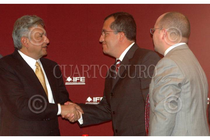MÉXICO, D.F. 08ENERO2006.- Andrés Manuel López Obrador recibió la constancia del IFE al registrarse como candidato oficial del Partido de la Revolución Democrática (PRD) a la presidencia de la república de manos del consejero presidente del Instituto Federal Electoral (IFE) Luis Carlos Ugalde. FOTO: Iván Stephens/CUARTOSCURO.COM