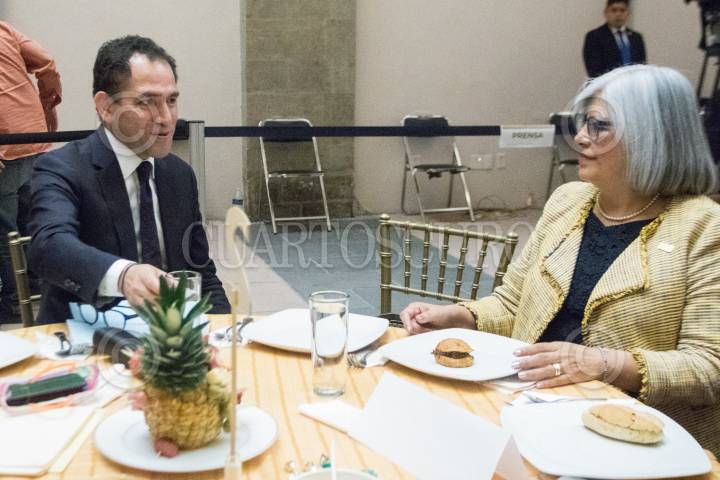 CIUDAD DE MÉXICO, 10MARZO2020.- El Secretario de Hacienda Arturo Herrera Gutiérrez, junto con Jorge Andrés Raygoza Echegaray, director de la Casa de Moneda y Galia Borja Tesorera de la Federación, en la presentación de las medallas conmemorativas "Celebrando a las Mujeres através de dos medallas, a Leona Vicario y a Josefa Ortíz de Dominguez, evento que se realizó en la Casa de la Moneda de México. FOTO: VICTORIA VALTIERRA/CUARTOSCURO.COM