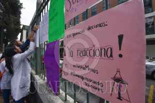 Estudiantes de la Facultad de Química de la UAEM entregaron un pliego petitorio en rectoría de la máxima casa de estudios y regresaron a su facultad caminado por las principales calles con pancartas en contra del acoso y la inseguridad. FOTO: CRISANTA ESPINOSA AGUILAR /CUARTOSCURO.COM