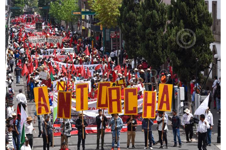 Integrantes de Antorcha Campesina marcharon en la ciudad de Toluca, con algunos tractores y caballos, exigiendo sean liberados los recursos para el campo mexiquense. FOTO: CRISANTA ESPINOSA AGUILAR /CUARTOSCURO.COM