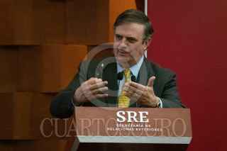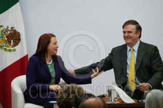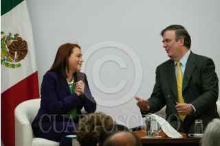 CIUDAD DE MÉXICO, 12MARZO2020.- En la Secretaría de Relaciones Exteriores se realizó un conversatorio con María Fernanda Espinosa, quien aspira a la Secretaría General de la Organización de los Estados Americanos (OEA). La acompañaron Marcelo Ebrard Casaubón, secretario de Relaciones Exteriores, y Martha Delgado Peralta, subsecretaria apara Asuntos Multilaterales y Derechos Humanos. FOTO: MOISÉS PABLO/CUARTOSCURO.COM