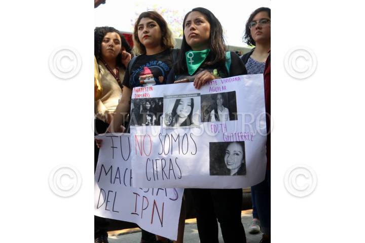 CIUDAD DE MÉXICO, 12MARZO2020.- Estudiantes del Instituto Nacional Politécnico (IPN) llegaron a la Dirección General, ubicada en Zacatenco. La marcha que realizaron salió del Casco de Santo Tomás para hacer valer los derechos de las estudiantes y visibilizar las denuncias del alumnado expuestas en los tendederos de diferentes escuelas de nivel superior. Las alumnas entregaron un pliego petitorio a Aracely Garcia Rico, directora de la Unidad Politécnico de Gestión con Perspectiva de Género; Maria Guagalupe Vargas Jacobo, secretaria General del IPN, y Paloma Zugarazo Ramírez, defensora de lls Derechis Politécnicos del IPN. FOTO: GRACIELA LÓPEZ /CUARTOSCURO.COM