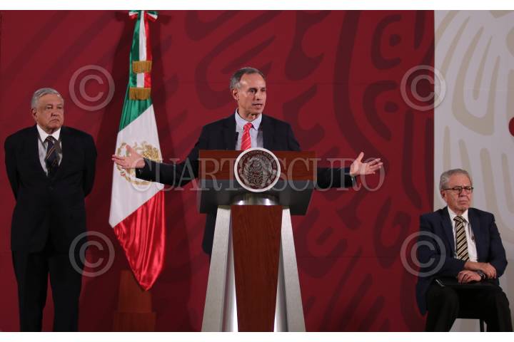 CIUDAD DE MÉXICO, 13MARZO2020.- Conferencia matutina del presidente Andrés Manuel López Obrador en compañía de Hugo López-Gatell, subsecretario de Prevención y Promoción a la Salud, Jorge Alcocer, secretaría de Salud, y Ricardo Cortés Alcalá, director general de Promoción de la Salud, para aclarar dudas respecto a la situación del país frente a la pandemia por Coronavirus Covid-19. López-Gatell exhortó a la población a mantener la calma así como practicar las medidas de cuidado ya difundidas. FOTO: GALO CAÑAS /CUARTOSCURO.COM