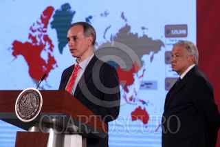 CIUDAD DE MÉXICO, 13MARZO2020.- Conferencia matutina del presidente Andrés Manuel López Obrador en compañía de Hugo López-Gatell, subsecretario de Prevención y Promoción a la Salud, Jorge Alcocer, secretaría de Salud, y Ricardo Cortés Alcalá, director general de Promoción de la Salud, para aclarar dudas respecto a la situación del país frente a la pandemia por Coronavirus Covid-19. López-Gatell exhortó a la población a mantener la calma así como practicar las medidas de cuidado ya difundidas. FOTO: GALO CAÑAS /CUARTOSCURO.COM