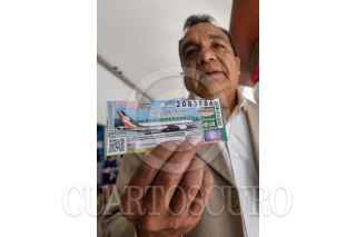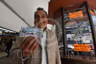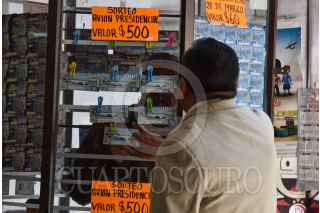 Un maestro jubilado decidió probar suerte y comprar su cachito de lotería para el sorteo del Avión Presidencial, el costo de cada cachito es de 500 pesos, la mayoría de puestos de lotería de la capital mexiquense ya vende este boleto. FOTO: CRISANTA ESPINOSA AGUILAR /CUARTOSCURO.COM