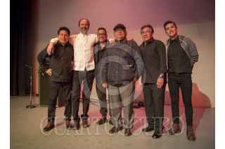ENSENADA, BAJA CALIFORNIA, 12MARZO2020.- El escritor Juan Villoro presentó la conferencia-concierto “En el jardín azul de tu extravío. Amado Nervo y la canción romántica”, con el que rinde homenaje al poeta nayarita, en el Ciclo de conferencias México. Arte y Cultura en Baja California, organizado por la Secretaría de Cultura estatal. La presentación realizada en el Teatro de la Ciudad, forma parte de un espectáculo literario-musical creado en 2019 para conmemorar al autor de “Los Jardines Interiores”, en el centenario de su fallecimiento. En la imagen presentadores posan con Pedro Ochoa, Secretario de Cultural del Estado. FOTO: OMAR MARTÍNEZ /CUARTOSCURO.COM
