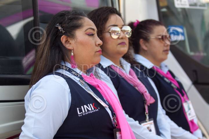 MONTERREY, NUEVO LEÓN, 13MARZO2020.- Diversas empresas de transporte urbano iniciaron una campaña contra el acoso en el transporte público con botones de pánico el cual las mujeres que sufran algún tipo de acoso podrán presionar el botón de pánico el cuál provocará que suene una alarma con luz de emergencia, el operador tiene la obligación de cerrar las puertas y llamar a las autoridades correspondientes. FOTO: GABRIELA PÉREZ MONTIEL / CUARTOSCURO.COM