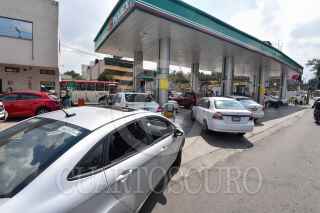El precio de la gasolina en algunas gasolineras de la ciudad de Toluca continúa bajando, lo que ha provocado que los automovilistas hagan fila para poder cargar combustible aprovechando los bajos precios. FOTO: CRISANTA ESPINOSA AGUILAR /CUARTOSCURO.COM