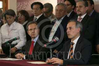 CIUDAD DE MÉXICO, 14MARZO2020.- Esteban Moctezuma Barragán, secretario de Educación Pública, y Hugo López-Gatell, subsecretario de Prevención y Promoción a la Salud, ofrecieron conferencia de prensa para dar detalles de las medidas de contención ante el posible contagio de Coronavirus Covid-19. Entre estas se encuentra la ampliación del periodo vacacional de Semana Santa a un mes, así como la creación de comisiones de salud por cada plantel. Moctezuma Barragán y López-Gatell llamaron a atender las prevenciones ya difundidas como son el lavado intensivo de manos y evitar el contacto físico para saludar. FOTO: GALO CAÑAS /CUARTOSCURO.COM