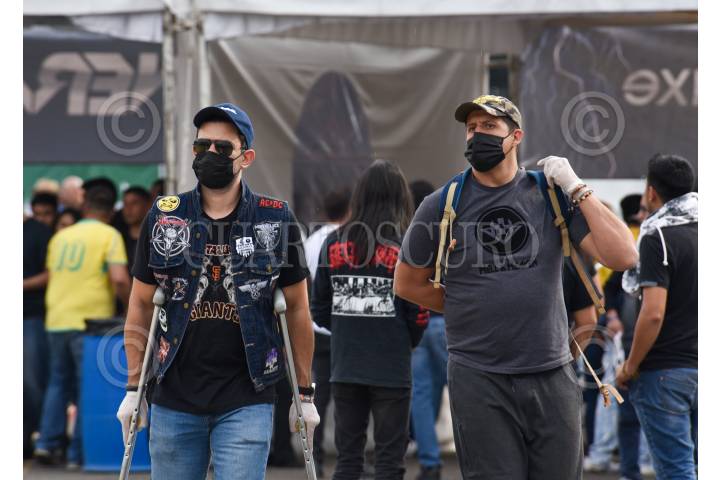 Algunos asistentes al Hell&Heaven tomaron medidas de precaución, cargaron con gel y cubrebocas para disfrutar de este festival de música, después de que han sido cancelados o pospuestos la mayoría de eventos públicos como medidas de seguridad ante el COVID-19. FOTO: CRISANTA ESPINOSA AGUILAR /CUARTOSCURO.COM