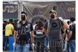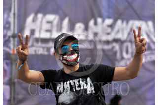 Algunos asistentes al Hell&Heaven tomaron medidas de precaución, cargaron con gel y cubrebocas para disfrutar de este festival de música, después de que han sido cancelados o pospuestos la mayoría de eventos públicos como medidas de seguridad ante el COVID-19. FOTO: CRISANTA ESPINOSA AGUILAR /CUARTOSCURO.COM