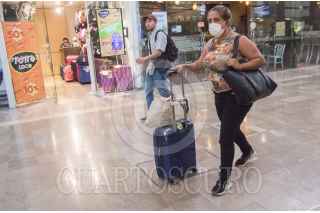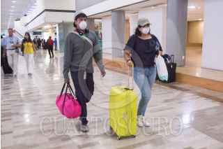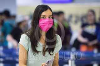 CIUDAD DE MÉXICO, 15MARZO2020.- Viajantes nacionales e internacionales, continuan con sus cubrebocas para evitar cualquier contagio, sobre todo de Coronavirus, el aeropuerto Internacional de la Ciudad de México. FOTO: VICTORIA VALTIERRA/CUARTOSCURO.COM