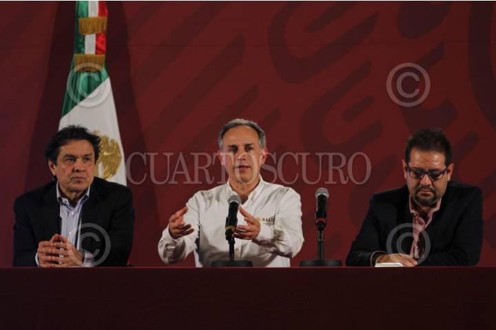 CIUDAD DE MÉXICO, 15MARZO2020.- Gustavo Reyes Terán, titular de la Comisión Coordinadora de Institutos Nacionales de Salud y Hospitales de Alta Especialidad, Hugo López-Gatell, subsecretario de Prevención y Promoción a la salud, y Ricardo Cortés, titular de Dirección General de Promoción de la Salud, ofrecieron conferencia de prensa para dar detalles de la situación respecto al Coronavirus Covid-19 en el país. En donde informaron que ya son 53 casos de Coronavirus confirmados en México, de los cuales 60% son hombres y 40% mujeres. FOTO: MAGDALENA MONTIEL /CUARTOSCURO.COM