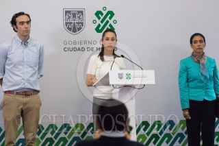 CIUDAD DE MÉXICO, 16MARZO2020.- La jefa del Gobierno de la Ciudad, Claudia Sheinbaum Pardo, junto con la titular de Salud Oliva López Arellano, y el secretario de Movilidad, Andrés Lajous Loaeza, en una conferencia "Sana Distancia", en la sala contigua del Francisco Zarco. FOTO: VICTORIA VALTIERRA/CUARTOSCURO.COM