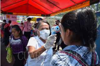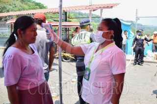 TALISMÁN, GUATEMALA, 16MARZO2020.- En el paso fronterizo Talismán-Guatemala el Ministerio de Salud guatemalteco ha colocado puntos de revisión con termómetros digitales para revisar a las personas que ingresan, ahí les hacen entrevistas para detectar posibles casos de personas contagiadas con el Covid-19. Estos puntos están habilitados las 24 horas del día. FOTO: DAMIÁN SÁNHCEZ/CUARTOSCURO.COM
