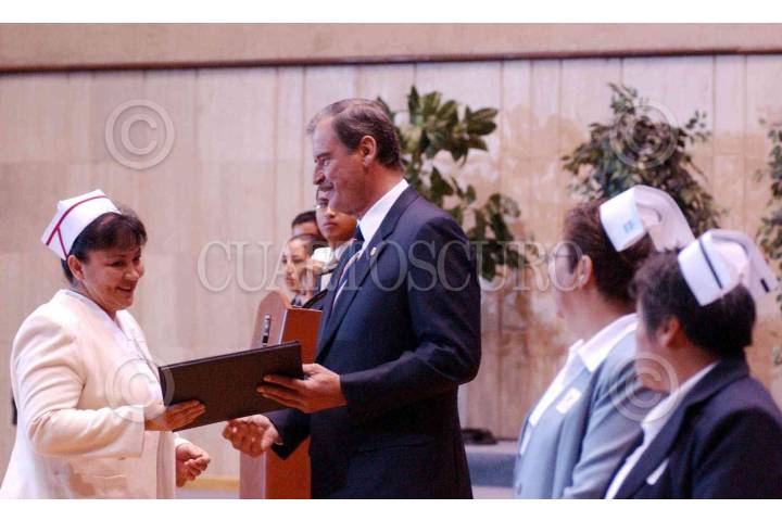 MEXICO D.F. 09 ENERO 2006.- El presidente Vicente Fox, encabezo la ceremonia conmemorativa del día de la enfermera 2006, donde entregó reconocimientos al personal de enfermería, en la unidad de congresos centro médico nacional Siglo XXI. FOTO: Fernando García/CUARTOSCURO.COM