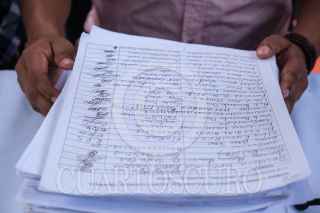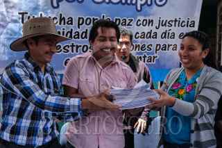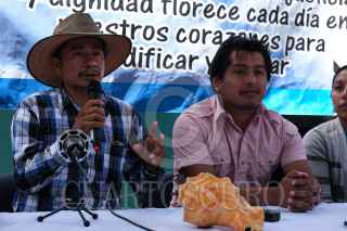 SAN CRISTÓBAL DE LAS CASAS, CHIAPAS, 16MARZO2020.- Se celebró una conferencia de prensa en las oficinas del Centro de Derechos Humanos Fray Bartolomé de las Casas, donde Virginia Díaz Rojas representante de la Coordinadora Diocesana de Derechos Humanos Chiapas, entregó 12124 firmas recabadas en 15 comunidades apoyando el amparo interpuesto por el Consejo Regional Indígena y Popular de Xpujil, Campeche. Ernesto Martínez y Nicolás Moreno integrantes de la dirección del Consejo Xpujil, recibieron las firmas y denunciaron la presión que se ejerció durante la consulta publica realizada en las comunidades, ofreciéndoles a cambio de su voto a favor de la construcción, la solución a los problemas que han afectado por años a la comunidad, como; falta de agua, educación, salud y trabajo. Se denunció también la represión a las personas y organizaciones que se han posicionado en contra del proyecto. FOTO: ISABEL MATEOS /CUARTOSCURO.COM