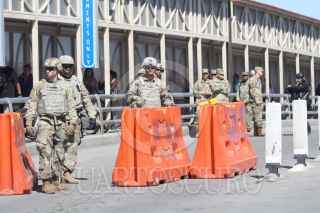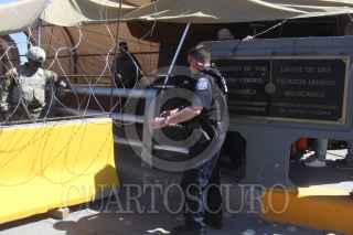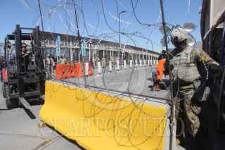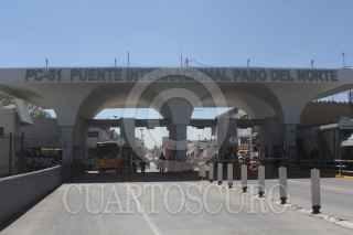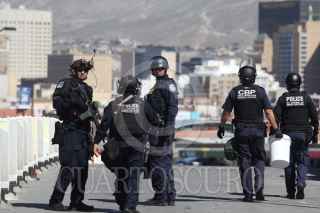 CIUDAD JUÁREZ, CHIHUAHUA, 16MARZO2020.- Los integrantes del CBP realizaron maniobras en la joroba del puente, sin dar a conocer la autoridad norteamericana hasta el momento a qué obedeció el cierre. Sin embargo la Coordinación General de Seguridad Vial informó que tras concluir con un simulacro por parte de autoridades norteamericanas, reabrieron la circulación en el cruce internacional Pasó del Norte. Se exhorta a la comunidad estar pendientes de avisos ante eventuales cierres en este o el resto de los cruces internacionales. El cierre fue por un simulacro realizado por CBP el cual duró más de una hora. FOTO: NACHO RUIZ/CUARTOSCURO.COM