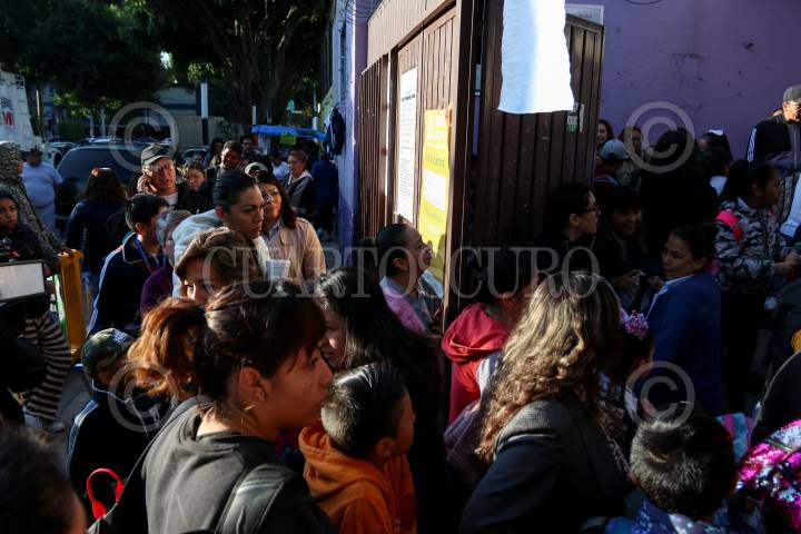 CIUDAD DE MÉXICO, 17MARZO2020.- Como parte de las medidas que la Secretaría de Educación Pública (SEP) anunció en días pasados para la prevención del contagio del Coronavirus Covid-19, el cual ya registra 82 casos confirmados en nuestro país, varios filtros de sanidad fueron instaladas en las entradas de los planteles de educación básica, entre los que se encuentran la aplicación de gel antibacterial, la firma de una carta responsiva que acredita que el menor no está enfermo y el regreso a casa de cualquier alumno que presente síntomas de enfermedades respiratorias. Asimismo, las clases serán suspendidas a partir del 20 de marzo hasta el 20 de abril, por lo que el periodo vacacional de Semana Santa durará un mes. FOTO: GALO CAÑAS /CUARTOSCURO.COM