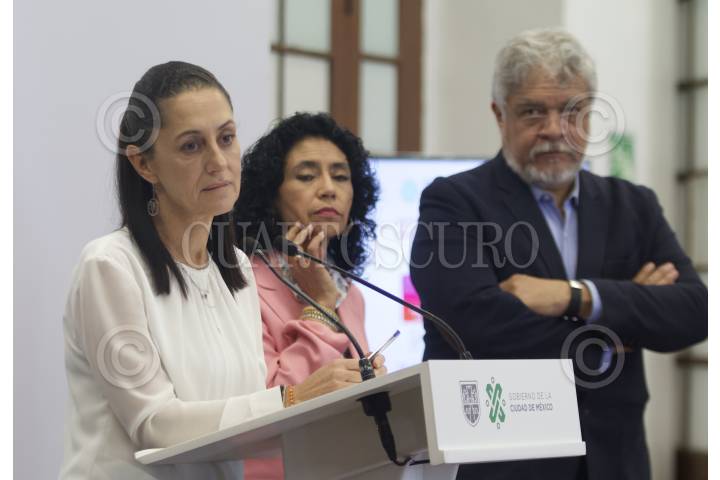 CIUDAD DE MÉXICO, 17MARZO2020.- Claudia Sheinbaum Pardo, jefa de Gobierno de la Ciudad, acompañada de Oliva López secretaria de Salud de la Ciudad, durante conferencia en el Antiguo Palacio de Ayuntamiento. FOTO: ANDREA MURCIA/CUARTOSCURO.COM