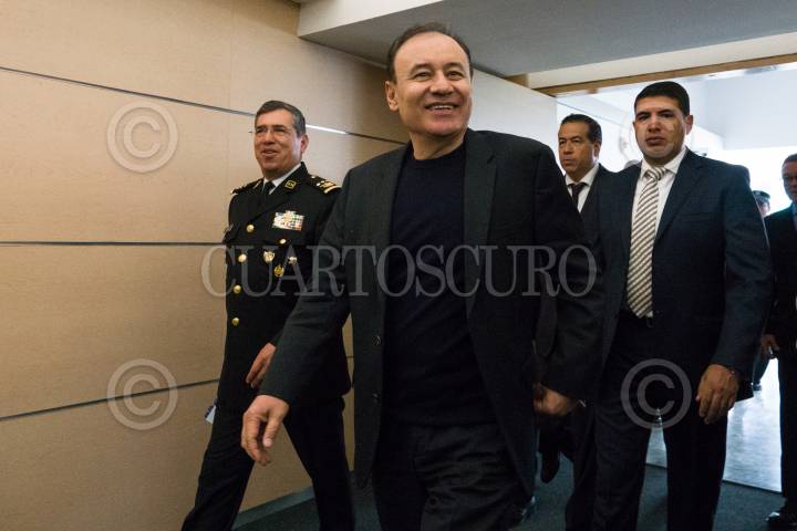 CIUDAD DE MÉXICO, 17MARZO2020.- Luis Rodríguez Bucio, comandante de la Guardia Nacional, y Alfonso Durazo Montaño, secretario de Seguridad y Participación Ciudadano, durante el lanzamiento de la campaña de concientización "Internet seguro para todas y todos", en las instalaciones de la SSyPC. FOTO: MOISÉS PABLO/CUARTOSCURO.COM