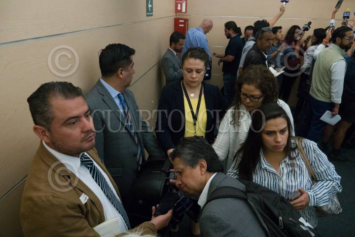 CIUDAD DE MÉXICO, 17MARZO2020.- Luis Rodríguez Bucio, comandante de la Guardia Nacional, y Alfonso Durazo Montaño, secretario de Seguridad y Participación Ciudadano, durante el lanzamiento de la campaña de concientización "Internet seguro para todas y todos", en las instalaciones de la SSyPC. FOTO: MOISÉS PABLO/CUARTOSCURO.COM