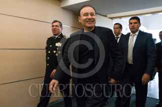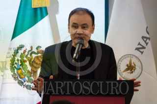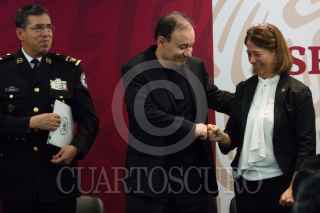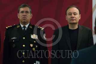 CIUDAD DE MÉXICO, 17MARZO2020.- Luis Rodríguez Bucio, comandante de la Guardia Nacional, y Alfonso Durazo Montaño, secretario de Seguridad y Participación Ciudadano, durante el lanzamiento de la campaña de concientización "Internet seguro para todas y todos", en las instalaciones de la SSyPC. FOTO: MOISÉS PABLO/CUARTOSCURO.COM