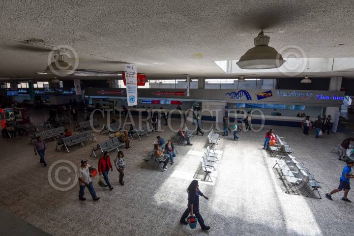 La Terminal de Autobuses de Toluca incrementó sus medidas de higiene colocando en varios puntos gel antibacterial y letreros de información del Coronavirus, y se prevé que en los siguientes días se reduzca de manera considerable el uso del transporte foráneo en comparación a días normales hasta en un 60 por ciento. FOTO: CRISANTA ESPINOSA AGUILAR /CUARTOSCURO.COM