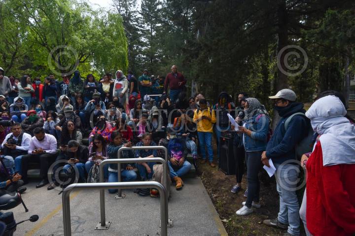 Estudiantes de la Facultad de Ciencias Políticas y Sociales de la UAEM que se mantienen en paro denunciaron la existencia de una red de hostigamiento y espionaje durante lo que sería la primera mesa de diálogo respecto a su pliego petitorio con autoridades universitarias. FOTO: CRISANTA ESPINOSA AGUILAR /CUARTOSCURO.COM