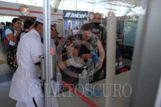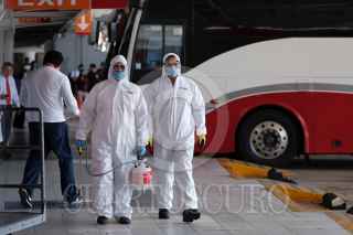 CANCÚN, QUINTANA ROO, 17MARZO2020.- Personal de la terminal de autobuses ADO desinfectan las áreas comunes del sitio que tiene gran afluencia de turistas nacionales e internacionales, esto como medida preventiva a fin de evitar la propagación del Covid-19. FOTO: ELIZABETH RUIZ/CUARTOSCURO.COM