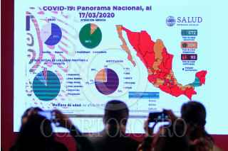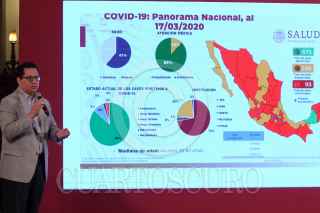 CIUDAD DE MÉXICO, 17MARZO2020.- Conferencia de prensa encabezada por José Luis Alomía Zegarra, director general de Epidemiología, y Ruy López Ridaura, director general del Centro Nacional de Programas Preventivos y Control de Enfermedades (Cenaprece), para informar sobre la situación actual del país respecto a la pandemia de Coronavirus Covid-19. Alomía Zegarra destacó que el número de contagios confirmados ha aumentado a 93 casos confirmados, A su vez, Lópe Ridaura destacó los insumos que se ocuparán para atender la ola de contagios. FOTO: GALO CAÑAS /CUARTOSCURO.COM