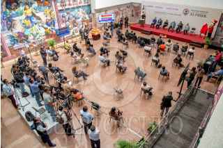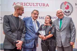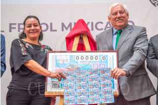 CIUDAD DE MÉXICO, 17MARZO2020.- Eduardo Villegas Megías, Coordinador de Memoria Histórica y Cultural de México; Enrique Prieto Ortega, director de la Lotería Nacional; Maria Luisa Albores, secretaria del Bienestar, y Víctor Villalobos Arámbula, titular de Agricultura, durante el evento "Nuestra riqueza, el frijol mexicano", con el que se busca promocionar su producción y su consumo. En el evento se develó un billete conmemorativo de la Lotería Nacional "Celebración del frijol mexicano", los recursos recaudados serán utilizados para promocionar este alimento fundamental en la dieta mexicana. FOTO:SADER/CUARTOSCURO.COM